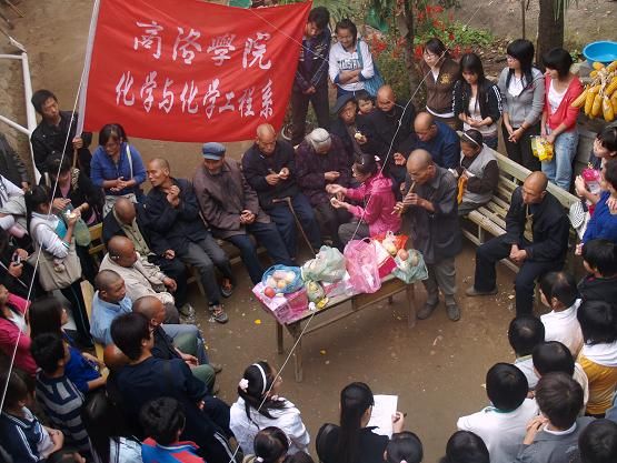 在九月九日重阳节来临之际,太阳集团化学与化学工程在系党支书记李家兴老师的带领下,一行九十多人前往静泉山看望孤寡老人,并给他们送去了节日的问候与祝福。