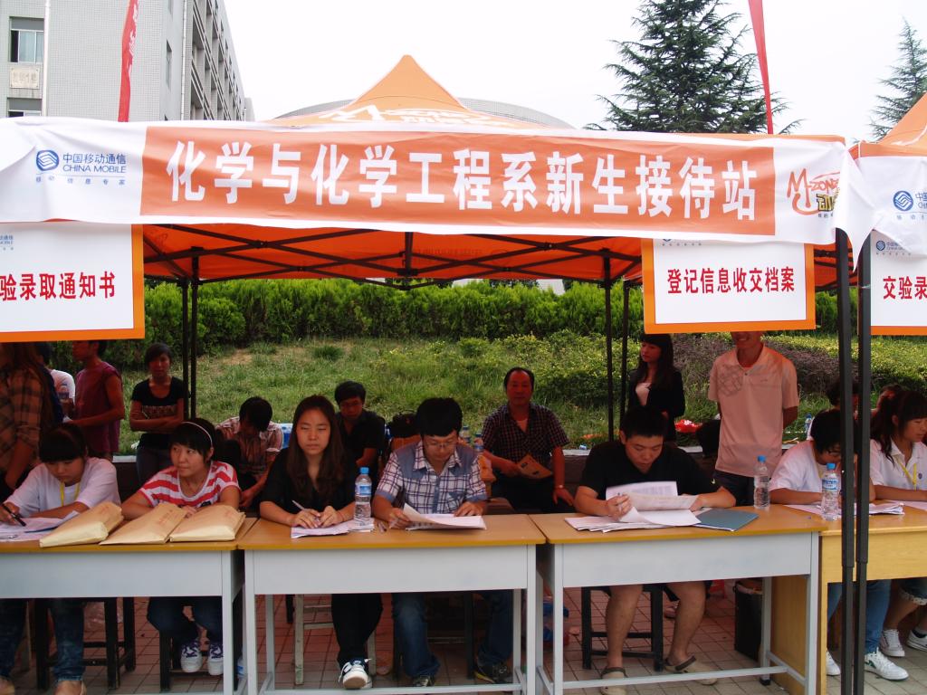 怀着对未来的憧憬,新生们来到梦中的象牙塔,学长学姐们热情地接待了学弟学妹们。接新生前,我系系分会召开会议,我系党总支书记刘全民强调:对待新生要热情,要让他们感受到化学系浓浓的亲情。我系接新生人员谨记书记教诲,迎着烈日不辞辛苦,带着学弟学妹们前往个个地点排队、缴费、报到,他们以饱满的热情让新生感受到了化学与化学工程系的温暖,我们来自不同的地方,但我们千里相会于化学与化学工程系,我们就是相亲相爱的一家人。