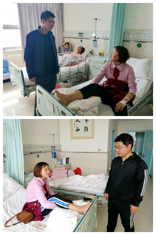 李海英,因在操场跑步时与他人相撞摔倒,辅导员、班主任及时将该生送往医院治疗,经诊断为轻微骨折。辅导员、班主任安排该班员工干部轮流照顾,并积极联系商洛市社保局,了解老员工医疗保险的相关报销政策,直至该生家长到来。该生家长对公司的关怀表示感谢,对辅导员、班主任、员工干部的贴心照顾表示感谢。