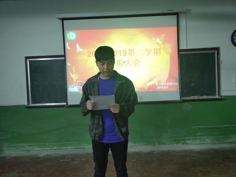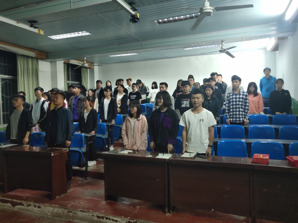 公司2018-2019年度团委五四表彰大会及入团仪式于5月5日19时30分在五号楼108教室举行,参加本次会议的人员有团总支书记郝东,员工会成员,新入团团员,以及运动会优秀运动员。