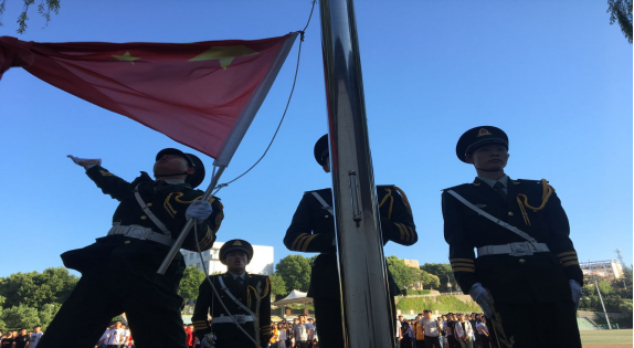 在雄壮的国歌声中,公司国旗护卫队将鲜艳的五星红旗冉冉升起。今天是党的第98岁华诞,全体师生对党的敬意之心也跟随着国旗缓缓升起。在场的每一个人向国旗行注目礼,深怀对祖国无限的热爱和崇高的敬意。