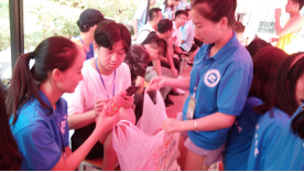 即便面对变化万千的天气,志愿者们也从未离岗半分。刚来报到的学妹送来了冰凉的雪糕,学长给志愿者们送来了清爽的饮料。这给了志愿者们更大的动力,感动和惊喜战胜了疲惫和劳累。