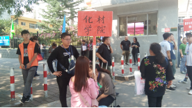 新生报到期间,公司党总支书记李军富,学工办主任陈卫香前来察看和慰问志愿者们的工作。