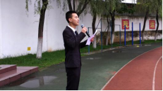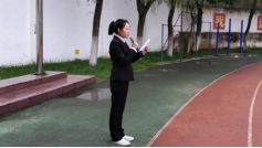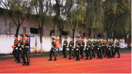 在全院师生的注目礼下,英姿飒爽的国旗护卫队队员们迈着铿锵的步伐护送着鲜艳的五星红旗走到国旗台下,全场一片肃静。在庄严激昂的国歌声中,升旗手振臂一挥,五星红旗徐徐展开,缓缓升起,迎风飘扬在校园的上空中。