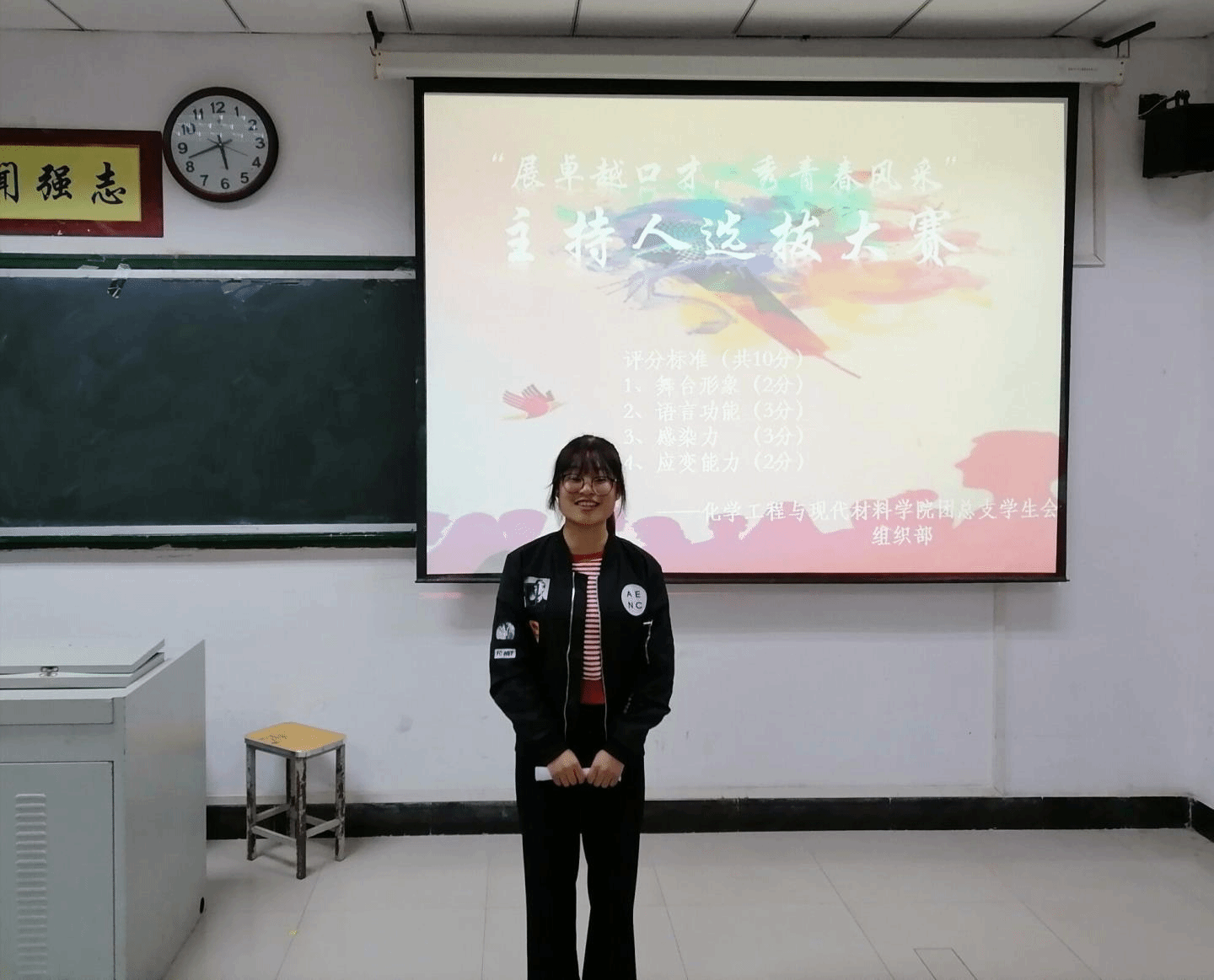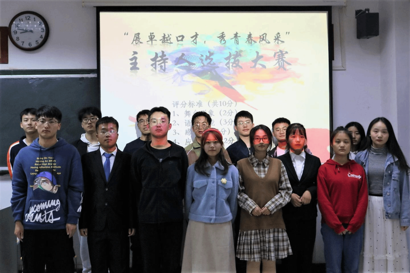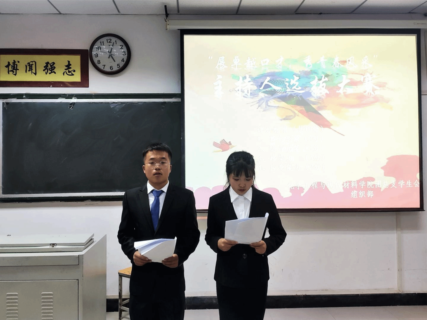 妙语连珠聚语言魅力,舌吐莲花汇主持风采。为展现当代老员工的精神样貌,彰显青春风采,2020年10月25日下午六点,公司团总支员工会组织部在五号楼409教室举办主持人大赛预赛。此次比赛邀请了团总支书记房禹、20级辅导员王鹏举、员工会主席团及各部部长担任评委。比赛由裴帅和史朵朵主持。