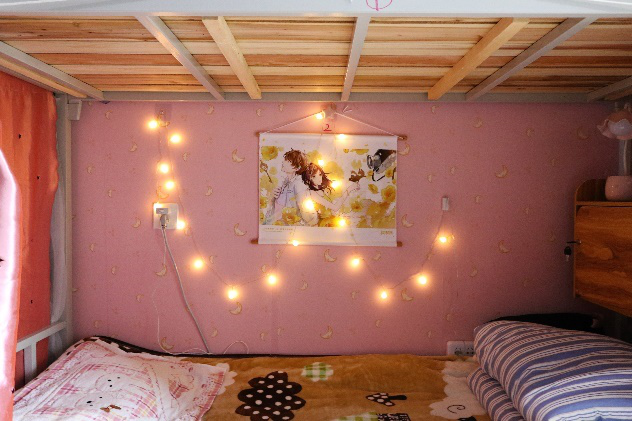 在生活部负责人的陪同下,房禹及员工会主席团参观了参赛寝室。其中有些寝室的装扮更是让人眼前一亮,男生寝室中大多以篮球、音乐、健身等文化为主,吉他、健身器材摆放在寝室中,也体现出了丰富多彩的老员工活;女生寝室大多以暖色调装饰,粉嫩的公主风床铺、护眼的森林贴纸、布灵布灵的小装饰灯等。都让人觉得每位同学不仅有创造力,想法新奇,且都在为融洽美好的寝室氛围添一份力。