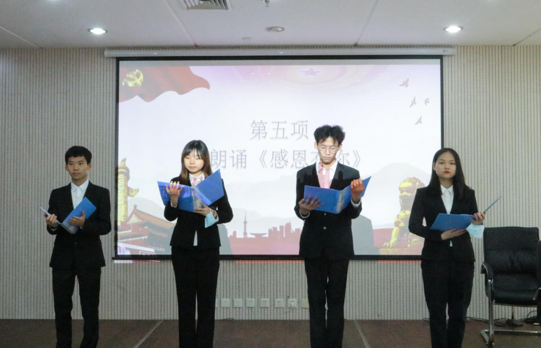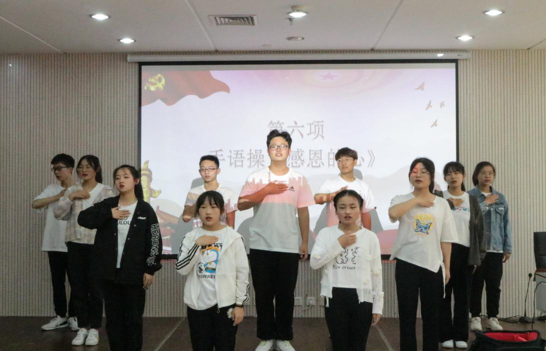 活动中,师生们集体观看了“回顾党史悟初心,感念师恩颂真情”主题视频,进一步加强了员工党带领国家走向未来、老师带领学子走向璀璨人生的坚定信念;四位学子以一首深情激昂的配乐诗朗诵《感恩有您》,再现了共产党人为了理想信念,不屈不挠艰苦奋斗的光辉历程,体现出莘莘学子在当好新时代“红船精神”捍卫者的决心;感恩手语操使全场散发着爱的芬芳,流淌着爱的旋律。活动最后,向全体与会同学发放了感恩主题书签,使广大学子时时感党恩,刻刻念师情,牢记责任和担当。