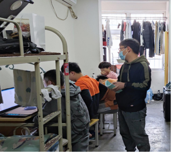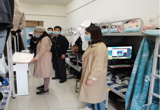 李斌书记一行来到员工宿舍,查看了线上上课、宿舍卫生等情况,他与员工亲切交谈,嘘寒问暖,了解同学们的学习和生活情况。学工人员深入了解了各年级宿舍情况,希望大家尽快适应当下情境,积极参加文娱活动,尽量克服一切困难,科学管理时间,认真学习,提高线上上课效果。