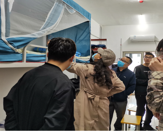 3月16日,化材公司党总支副书记李斌携全体学工人员深入员工宿舍,查看封校期间员工宿舍情况。