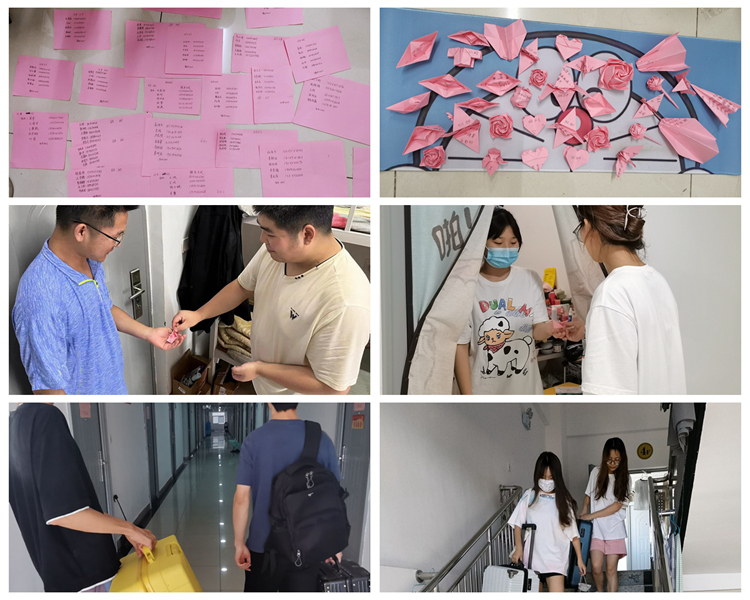 在即将踏上新的人生征途时,毕业生们收到了来自低年级学弟学妹们的神秘礼物——一张张用心准备的志愿服务卡。卡片上详细标注着班级、姓名和联系方式,并折叠成各式各样的手工品呈现在毕业生眼前。有“飞机巨轮、鲜花糖果、蜻蜓蜜蜂”,寓意着祝君启航、甜蜜、翱翔。毕业生可随时拨打电话,志愿服务队能为其提供物品整理,行李搬运,送站等服务。