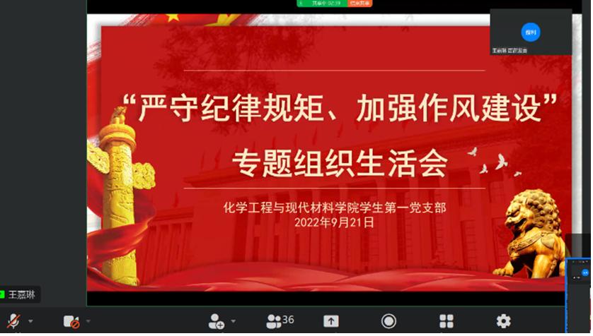 根据suncitygroup太阳集团党委《关于在全院开展纪律教育学习宣传月活动的通知》安排,引导全体党员、干部坚定理想信念,增强政治责任担当,以风清气正的政治生态迎接党的二十大胜利召开。suncitygroup太阳集团员工第一党支部于2022年9月21日16:30-18:30在钉钉平台召开了“严守纪律规矩、加强作风建设”线上专题组织生活会。本次会议由党支部书记王嘉琳主持,学工办主任李馥利、辅导员戴壹以及本支部全体党员、预备党员33人参加会议。