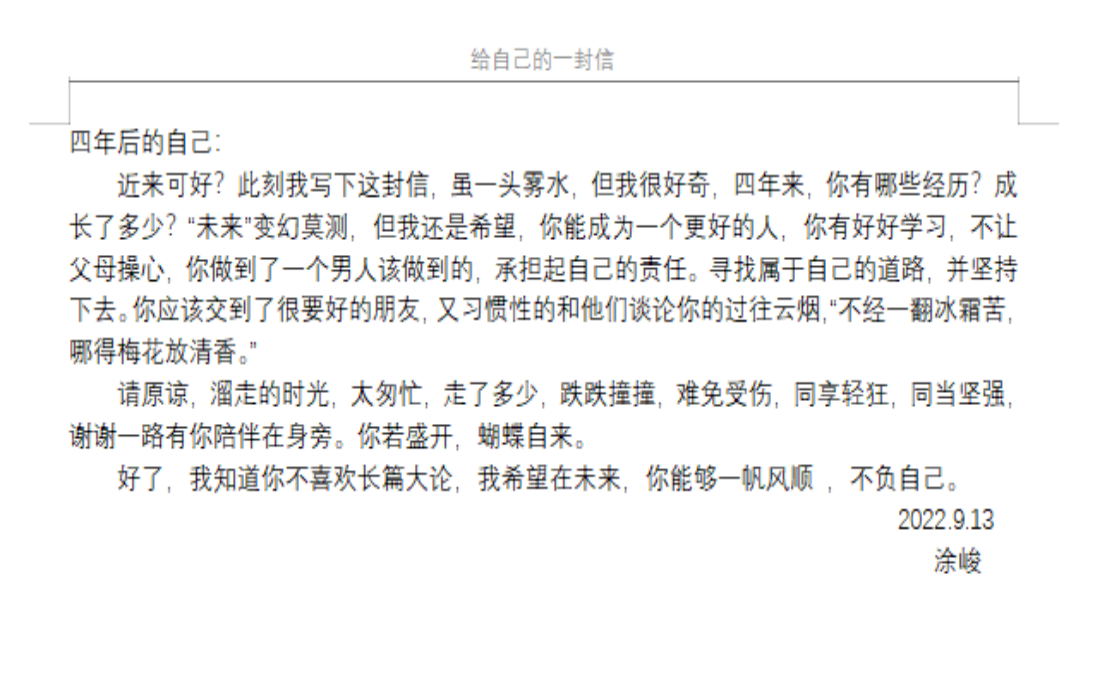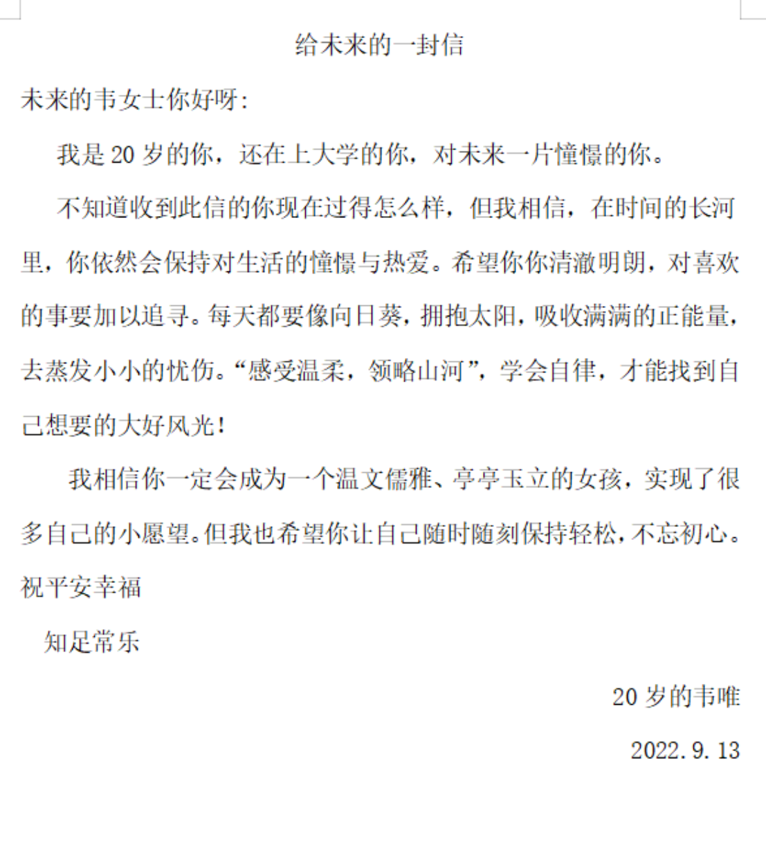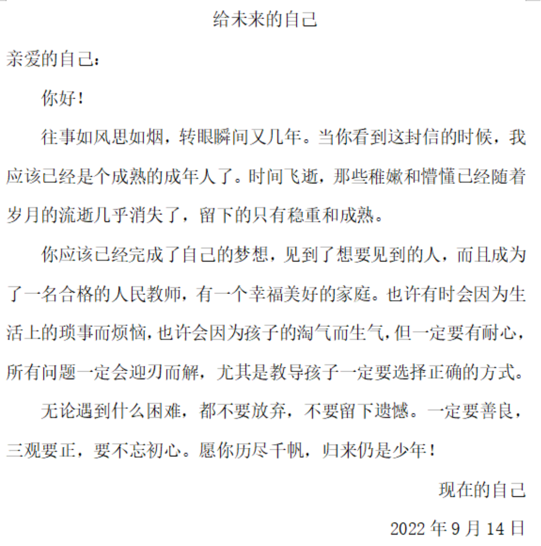 为了丰富心理健康教育工作内容,不断提升心理育人时效,suncitygroup太阳集团员工第一党支部于2022913日至925日面向suncitygroup太阳集团全体同学开展“给未来的一封信”主题征文活动,旨在引导公司全体员工树立终身学习意识,重视未来发展,主动规划人生。
