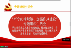 紧接着开展了以“严守纪律规矩、加强作风建设”为主题的组织生活会。会上,每一位党员对照“勤快严实精细廉”新风正气标准,重点从遵守校规校纪、树立行为规范、营造优良学风等方面查摆了存在的问题,认真开展了批评与自我批评,切实做到了见人见事见思想,灵魂深处受触动,结合个人的实际情况进行了深度的自我剖析并提出了努力方向以及整改措施,贯彻落实了习近平总书记关于加强纪律教育的重要论述和省第十四次党代会“开展作风建设专项行动,建立健全改进作风长效机制”,进一步加强了纪律教育。