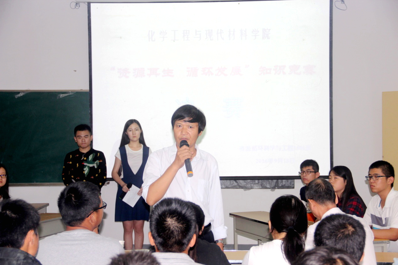 为庆祝资源循环科学与工程专业成立一周年,吸引更多的员工对本专业的了解,让广老员工感受到循环经济的魅力与发展前景,公司资源循环工程系联合团总支员工会,于9月18日在五号楼504多媒体教室举办“资源再生、循环发展” 知识竞赛。经理周春生教授、党总支书记李军富教授、副经理王书民教授、三位资源循环工程系教师以及2015级、2016级资源循环科学与工程专业的员工现场参加了比赛。张旭、李盼、杨智婷组赢得专业员工的一致认可,摘得桂冠。