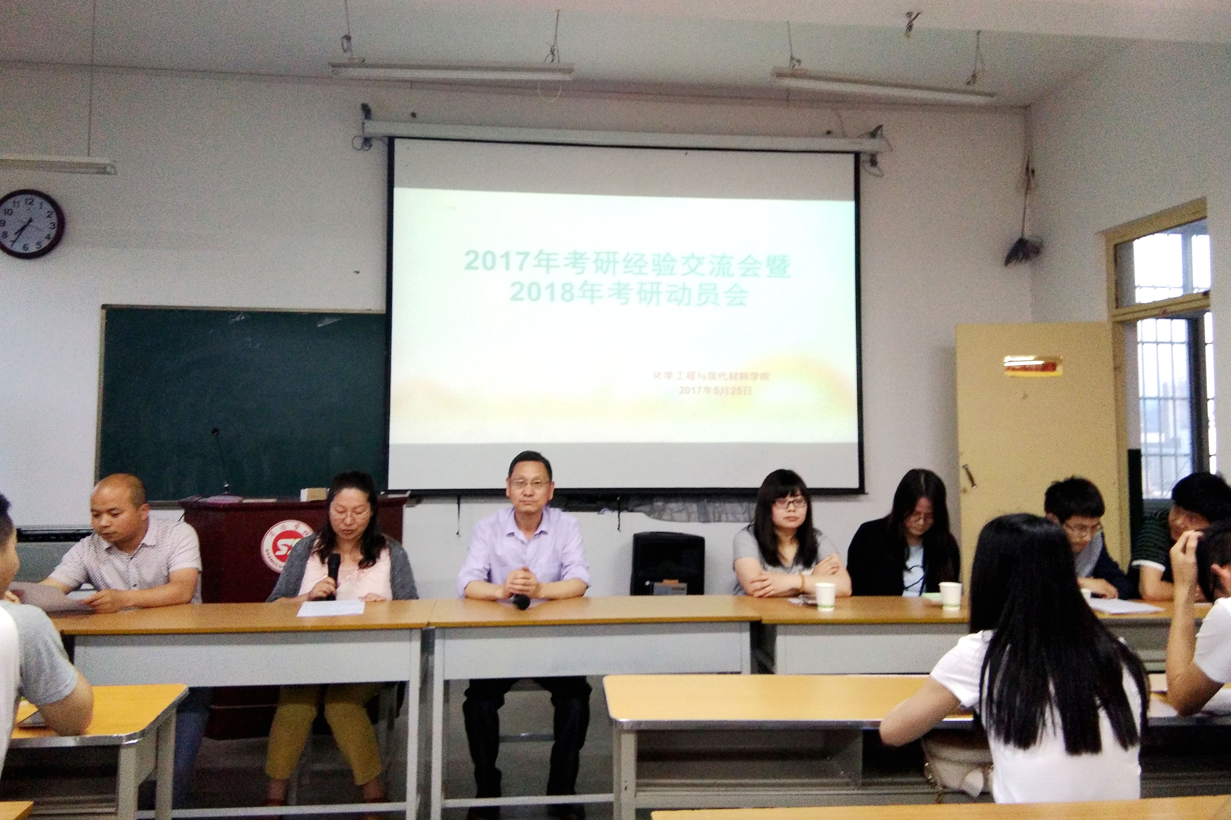 为了给公司广大学子搭建一个相互交流与学习的平台,团总支于5月25日晚7:30在5号教学楼504教室举办2017年考研经验交流会暨2018届考研动员会。学工办主任陈卫香主持会议,党总支书记李军富教授出席并作动员讲话,崔孝炜博士、元飞博士、李美兰博士、龚伟博士、叶媛媛博士、2013级辅导员王淦卿及80余名考研学子参加了会议。