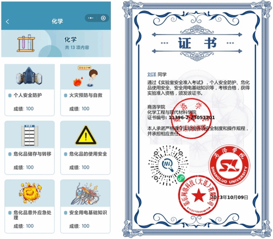 活动内容主要为慕乐网络开发的虚拟实验室安全知识考核,包括个人安全防护、火灾预防与自救、高温低温操作安全、玻璃器材使用安全、危化品储存与转移、危化品的使用安全、气瓶使用安全、废弃物的安全处理与管控、危化品意外应急处理、安全用电基础知识、高压釜使用安全、化工原理等实验室相关安全知识。员工以趣味通关的方式完成考核,闯关成功后即获得《实验室安全准入考试合格证书》。