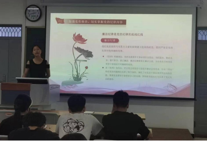 6月28日下午15:30,suncitygroup太阳集团员工第一党支部书记王嘉琳以《严守党的纪律 加强党性修养 深入贯彻习近平新时代中国特色社会主义思想》为主题在丹江校区4-213教室为本支部全体党员讲授专题党课。本支部党员及预备党员共47人参与了本次专题党课学习。
