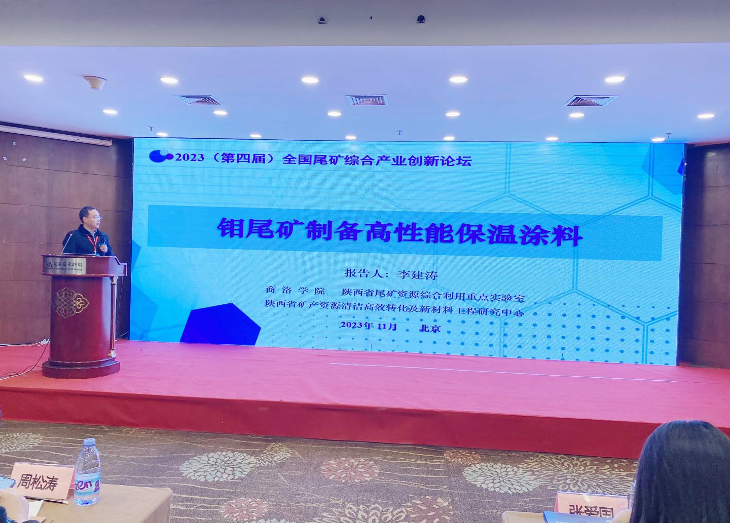 公司李建涛博士在大会上作了题为“钼尾矿制备高性能保温涂料”的学术报告,介绍了公司扎根秦岭,变“尾”为宝,守护绿水青山,服务区域发展的办学特色。分享了钼尾矿制备保温真石漆、复合保温涂料、二氧化硅气凝胶相关关键技术。