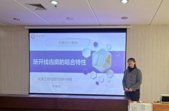 刘晓芬老师通过引入生活中常见物体利用齿轮工作原理的实例,图文并茂的做了《渐开线齿廓的啮合特性》的教学展示。通过对渐开线的形成和啮合传动关系的理解,为渐开线齿廓镍合特性的掌物奠定了良好的基础,利用动画视频教学手段、重点突出的完成了对间开线齿廓的啮合特性的讲解,生动形象的解释了“啮合特性”在齿轮界的大咖地位。