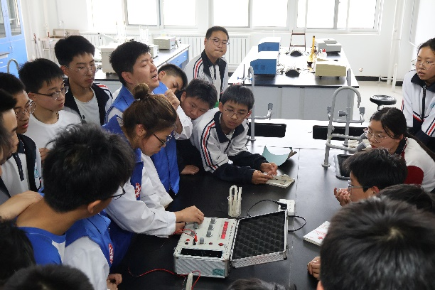 来到丹江校区4 号楼 4 楼实验室及教具展馆,精彩继续上演。王以寿博士在中学化学教学论实验室,带领员工进行电解水制氢实验,深入浅出地讲解氢能源的应用前景,让员工们在实践中感受化学与能源的紧密联系,激发了他们对清洁能源的探索热情。元飞博士在物理化学实验室,通过超纯蒸馏水制取、水质检测与锌铜电池组装测试等实验,引导员工从科学角度认识日常生活中的水与电,培养员工用科学思维解决实际问题的能力。苟杏杏博士则在化学教育成果展馆,为员工们解读各类化学实验教具背后的创新故事,让员工们领略到化学实验的独特魅力和创新价值。