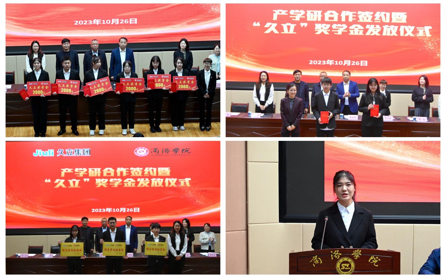 获奖员工代表、材料2102班员工胥思雨作了表态发言。四名已签约久立集团并获得奖学金的2024届毕业生通过视频为母校送上“生日”祝福和获奖感言。
