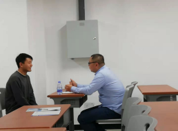 进入互动环节,同学们就自己所关心的具体得福利待遇、工作时长、职业发展等问题。 大约15点30分,在充分的了解之后,同学们开积极投放简历。大概16点,开始了现场面试,同学们热情积极,大方从容,面试在严肃的节奏里结束了。