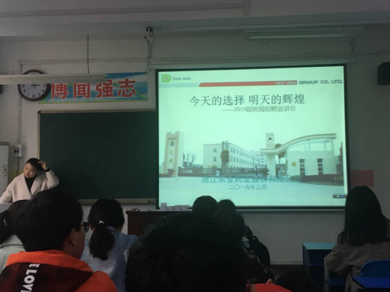 2019年3月19日下午15点浙江东邦药业有限公司招聘宣讲会在5号教学楼302教室成功举办,公司2019届 50余名毕业生参加了本次招聘会。