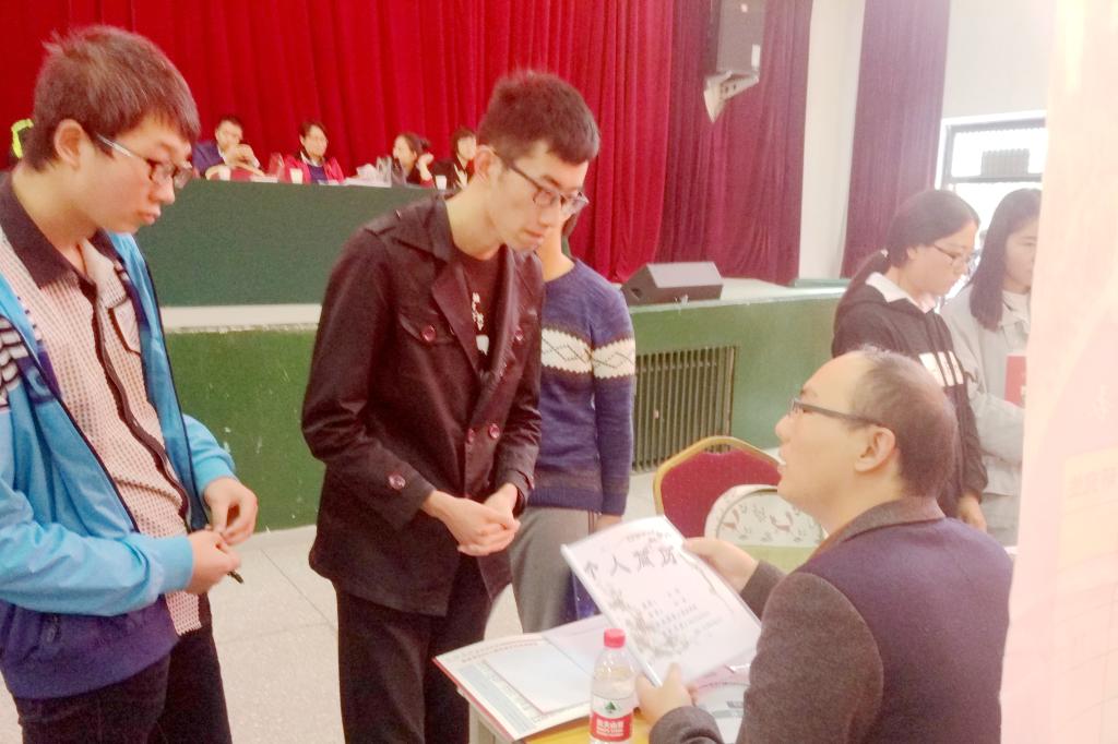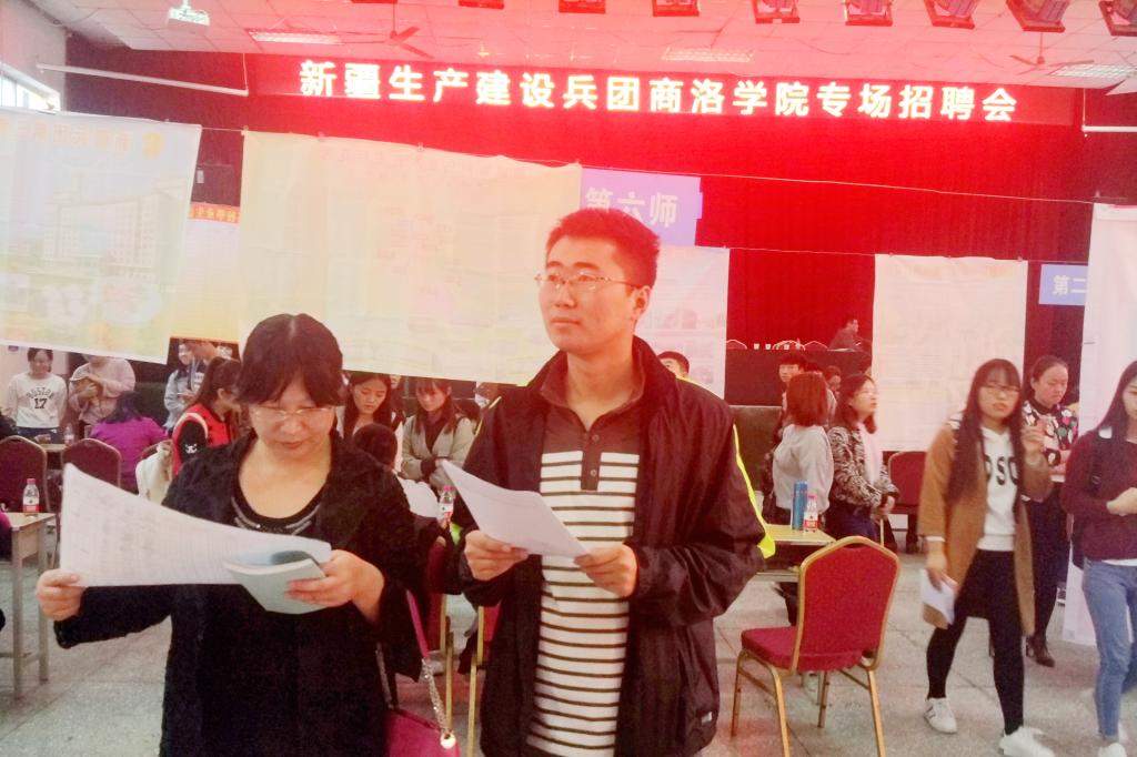 10月17日,由新疆生产建设兵团13个师30多个团场及企业组成人才招聘团来公司,举办新疆生产建设兵团太阳集团专场招聘会。公司党总支书记李军富教授、员工办公室主任陈卫香老师、毕业班辅导员王淦卿以及100余名在校应届生参加了本次招聘会。金属材料工程1302班张鹏、化学1301班宋凯成功签约。