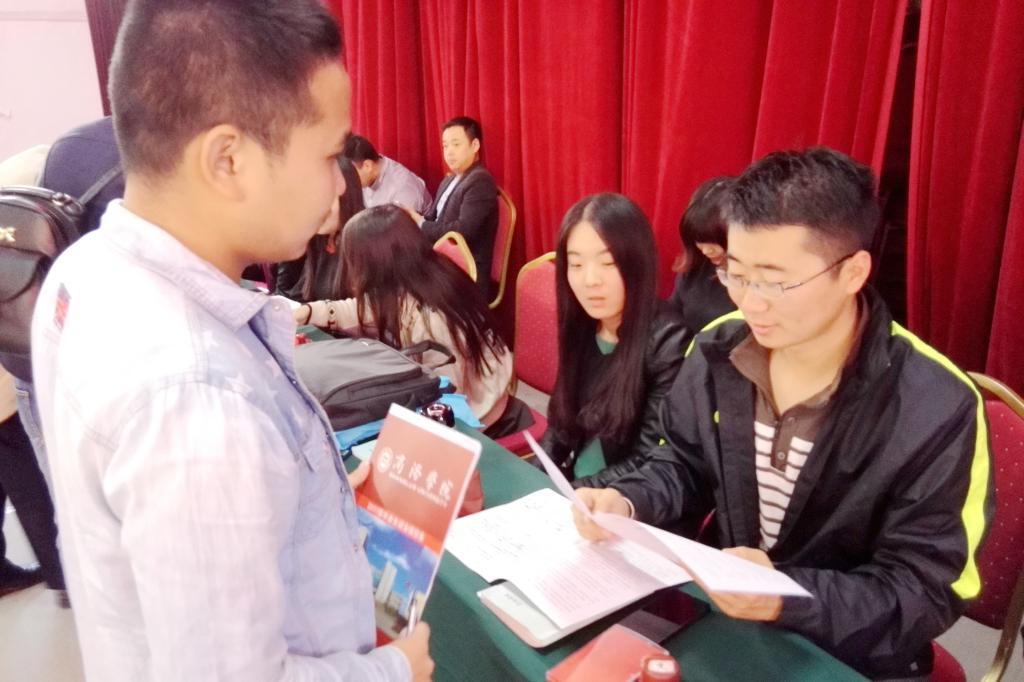 招聘会上,金属材料工程专业1302班张鹏第一个成功和新疆生产建设兵团签约,他告诉记者现在他感觉自己很轻松,之前对此次招聘会还有点紧张。因为一直也有想去新疆的意向,所以在招聘会之前做了充足的准备,向已经去新疆的学长咨询了很多问题。据张鹏分享经验,在校需认真学好专业课,并多参加校内活动或社会活动锻炼自己各方面能力,这些可以为求职提供帮助。