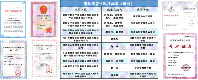 本专业教师紧密围绕国家战略与区域需求,紧扣秦岭域内有价元素高效回收、矿冶固废大规模消纳等关键科学问题和核心技术开展科研攻关,科研实力雄厚。先后主持或参与国家自然科学基金5项,主持省部级以上项目20余项,市厅级项目50余项,发表高水平学术论文100余篇。荣获国家级行业协会科技进步二等奖一项、三等奖一项;陕西省科技进步二等奖一项、三等奖一项。相关技术在陕南地区十余家企业成功推广应用,创造了显著的经济效益和环境效益,为陕南地区经济绿色高质量发展提供了强有力的技术支撑与智力支持。